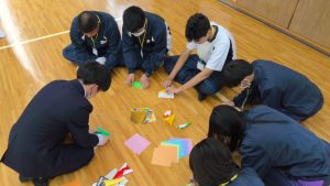 お知らせ/学校行事 第2回みあい特別支援学校との交流会 2025年11月25日 10月31日(金)本校にて、みあい特別支援学校との交流会が行われました。交流委員が意見を出し、生徒会執行部で案をまとめて3つのレクリエーションを行いました。4チーム対抗で行われ、お互いを声をかけあいながら優勝を目指して、楽しく取り組むことができました。