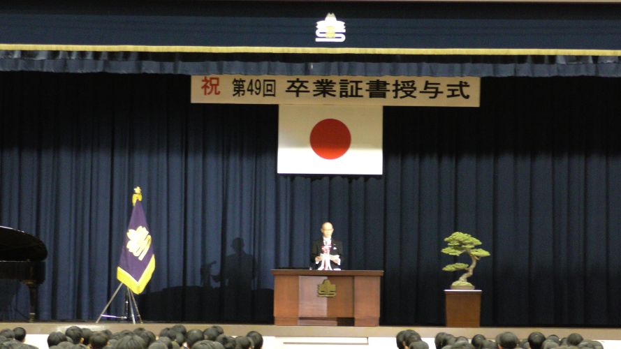 令和8年3月2日(月)に、第49回卒業証書授与式を挙行いたしました。PTA会長を始めとするPTA役員の方々や多くの保護者の方々のご臨席を賜り、感謝申し上げます。