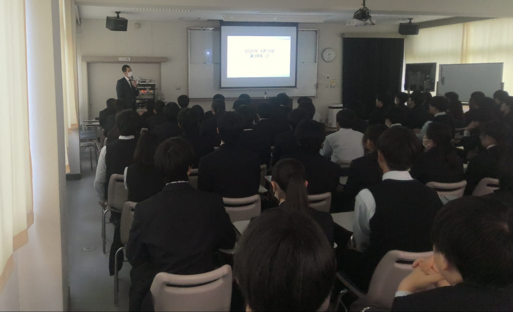 お知らせ 令和8年度 進路講演会(3年) 2026年4月15日 令和8年4月10日(金)に3年生を対象とした進路講演会を実施しました。進路指導主事より昨年度の振り返りと受験について、また、学年主任より学年目標等を話しました。50回生チーム一丸となって最後まで頑張り抜いてほしいと願っています。